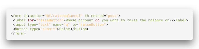 By this point, we need some user input. Whose balance will we raise? Let’s ask the user with a Form, like so: