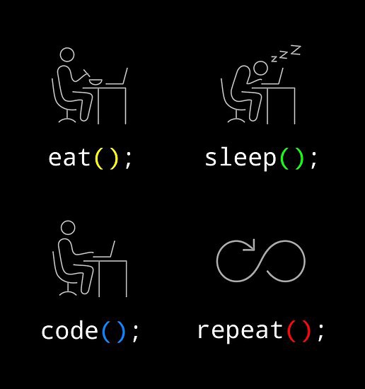 Some people need more hours than others. I used to always sleep 8 hours before I started this journey, but now I get an average of 7 hours. I tried cutting on sleeping hours even more but it just didn’t work for me. The following day I would be in a completely dormant state and guess what… I am supposed to use my brain all day! So, I find that to be more harmful than helpful. Although, if you are considering doing a bootcamp, be aware that some short nights every now and then are unavoidable — especially when you need to prepare presentations for the following day. Because the whole experience is so intense (and we keep being told that even when we are sleeping, our brain is making connections about the new things we learnt), it happens to me sometimes that I wake up thinking about code in the middle of the night. Not that often, but it has happened. More common is to wake up in the morning and have some of your first thoughts to be about code. I realize how much of a geek I sound writing this but well, I never said I like it, I just said it happens.