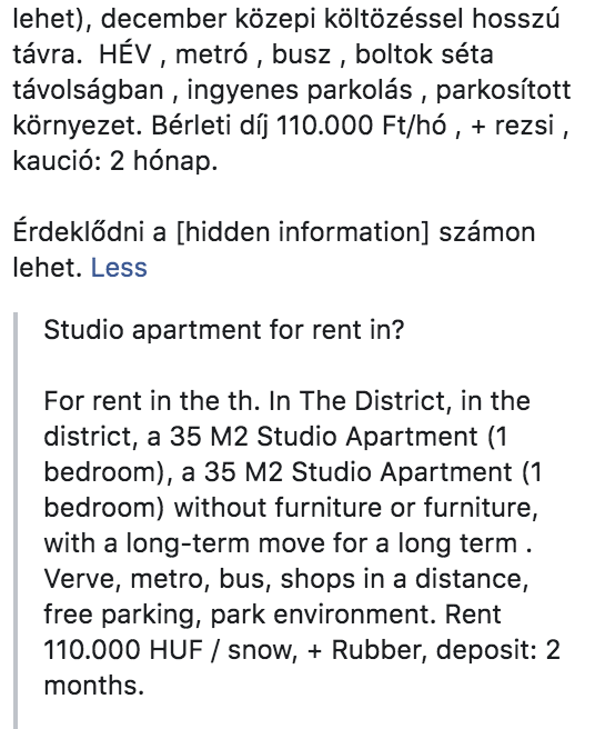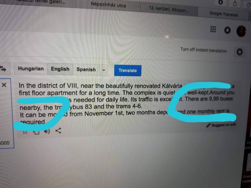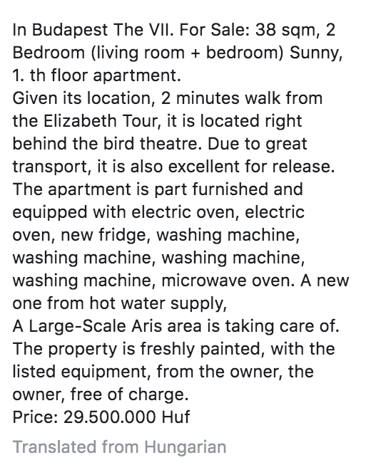 Looking for an apartment is probably what has given me the biggest amount of crazy translations. Even when I didn’t speak any Hungarian at all, I could still read numbers, obviously. And I found an ad for an apartment that had the number 10 in Hungarian but, the English translation said this…